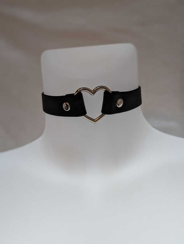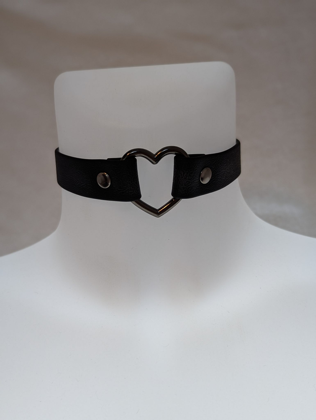 Collier coeur noir en sangle enduite.