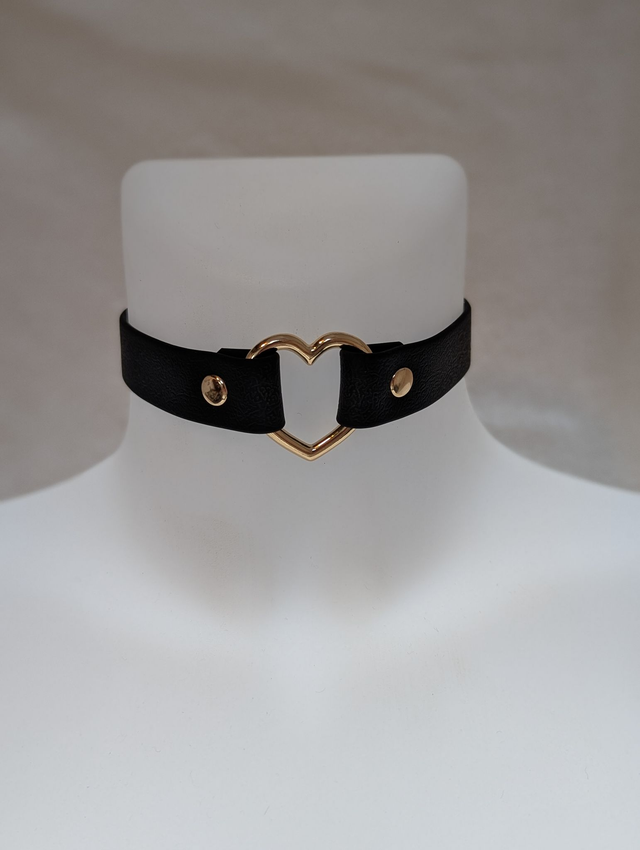 Collier coeur or en sangle enduite.